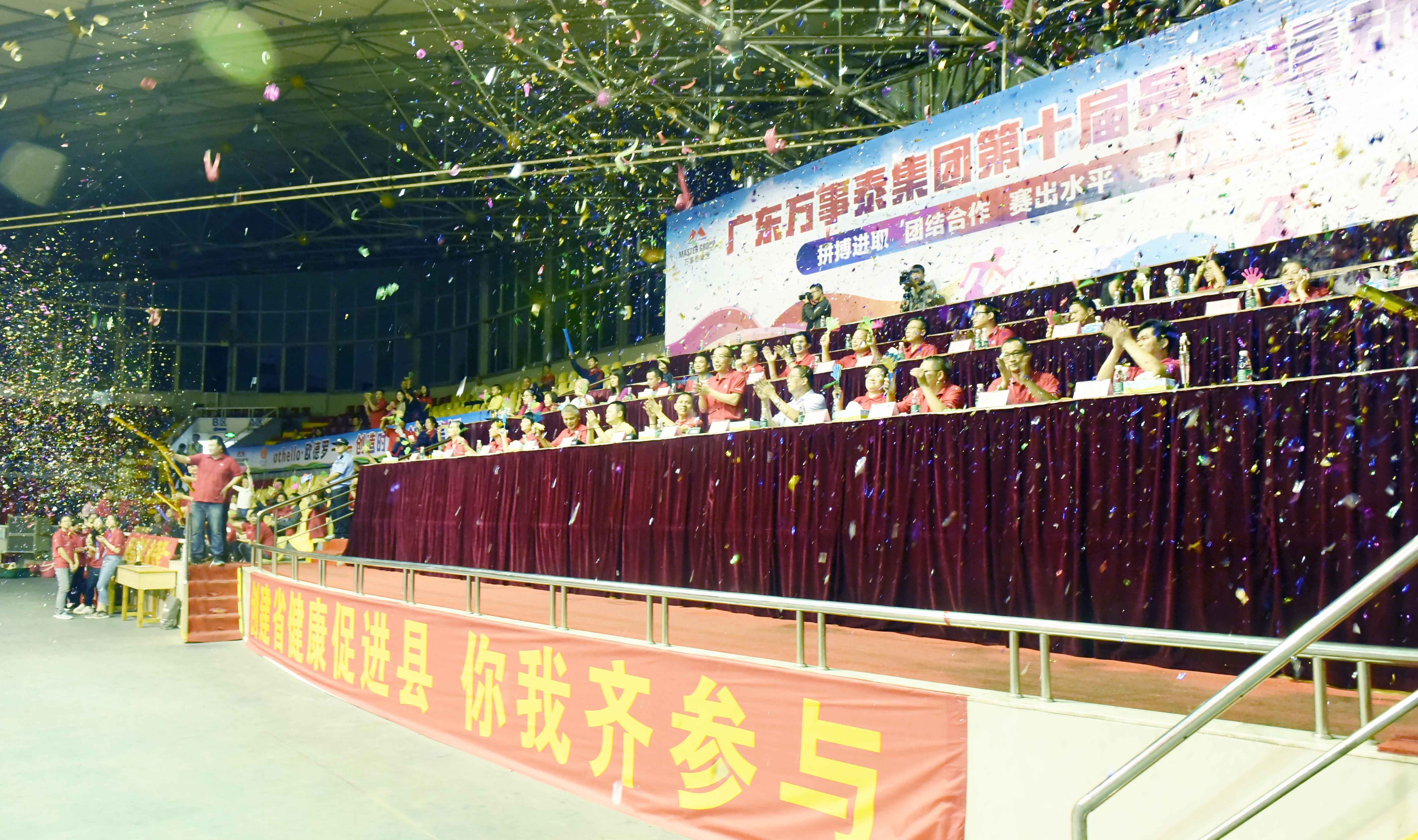 集團訊 經過10天緊張激烈的角逐,廣東萬事泰集團第十屆員工運動會圓滿完成各項賽事,11月15日晚在縣體育活動中心落下帷幕。新興縣體育局局長梁紹林、新興縣體育局副局長李雪柏、萬事泰集團常務副總裁劉炳耀以及廣東萬事泰集團董事、各部門負責人出席了本次會議。本屆運動會開設了籃球、拔河、乒乓球、羽毛球四大比賽項目,9支代表隊,歷時10天,共進行了154場比賽。在閉幕式正式開始前,作為本屆運動會重頭戲比賽項目…