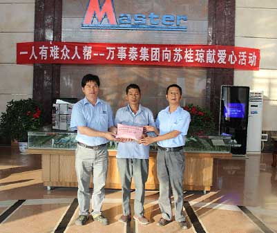 患難無(wú)情,人間有愛(ài),萬(wàn)事泰集團(tuán)員工蘇桂瓊因車(chē)禍重傷入住醫(yī)院,手術(shù)了三次,高額的醫(yī)藥費(fèi)給這個(gè)生活并不寬裕的家庭帶來(lái)了沉重的負(fù)擔(dān),為讓這個(gè)困難家庭重然希望,集團(tuán)工會(huì)發(fā)出了愛(ài)心捐款倡儀書(shū),立即得到了全體員工的響應(yīng),大家紛紛伸出援助之手參加到獻(xiàn)愛(ài)心的活動(dòng)中,11月20日,在集團(tuán)公司領(lǐng)導(dǎo)的帶領(lǐng)下,全體員工參加為蘇桂瓊獻(xiàn)愛(ài)心捐款活動(dòng),點(diǎn)點(diǎn)滴滴匯成愛(ài)的洪流,無(wú)私助人,溫暖真情,感動(dòng)人間,這一天廠區(qū)里、車(chē)間里、各…
