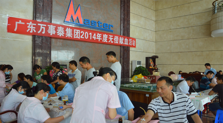 On July 31st, Master Group organized its annual blood donation event for 2014. The event actively responded to The Peoples’s Republic of China Donation Act while commenced Xinxing county blood donor spirit. Master employees demonstrated passion for social services; CEO Liu Bingyao and union leader Liang Hongguang take the lead in blood donation.