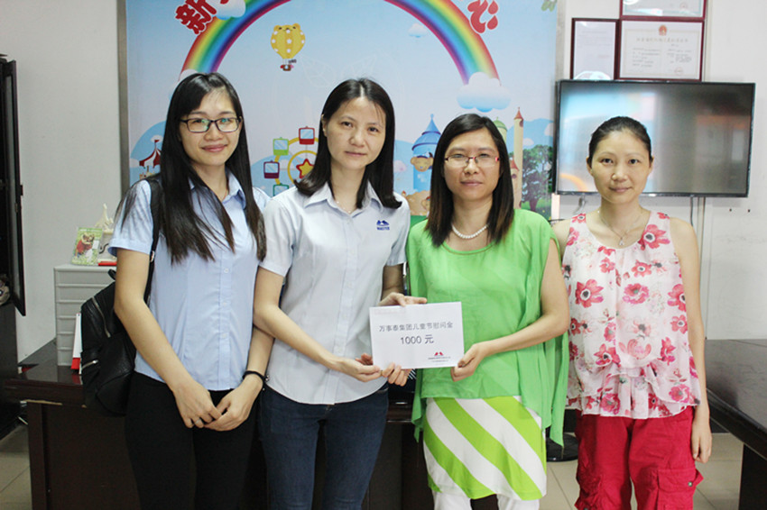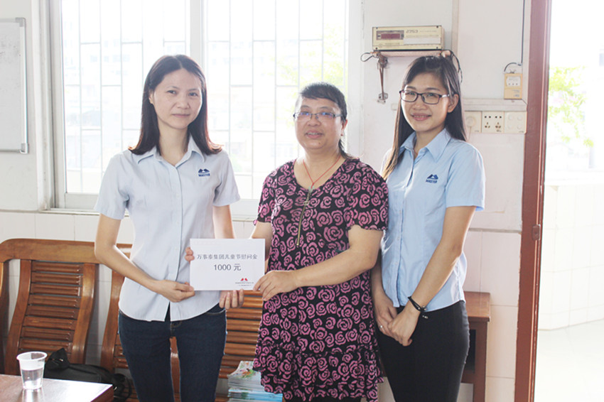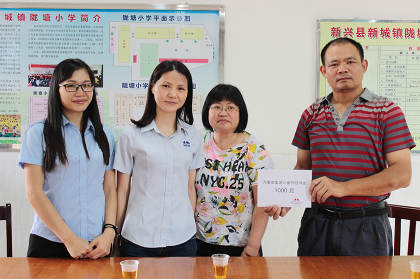 集團訊 時值六一兒童節到來之際,2016年5月27日下午,萬事泰集團工會、行政部以及企業文化部工作人員前往新興縣內5所外來工子女就讀小學慰問,集團代表與孩子們開心的分享節日的快樂,送去慰問金,并與孩子們合影留念。