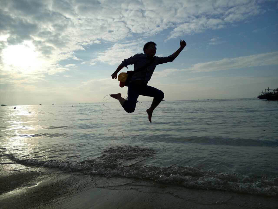 評委點評:利用剪影來表達動態,抓拍得很好,男孩在夕陽下的海灘上起跳的剪影動感十足,如果把手機放低一點,角度會更好。