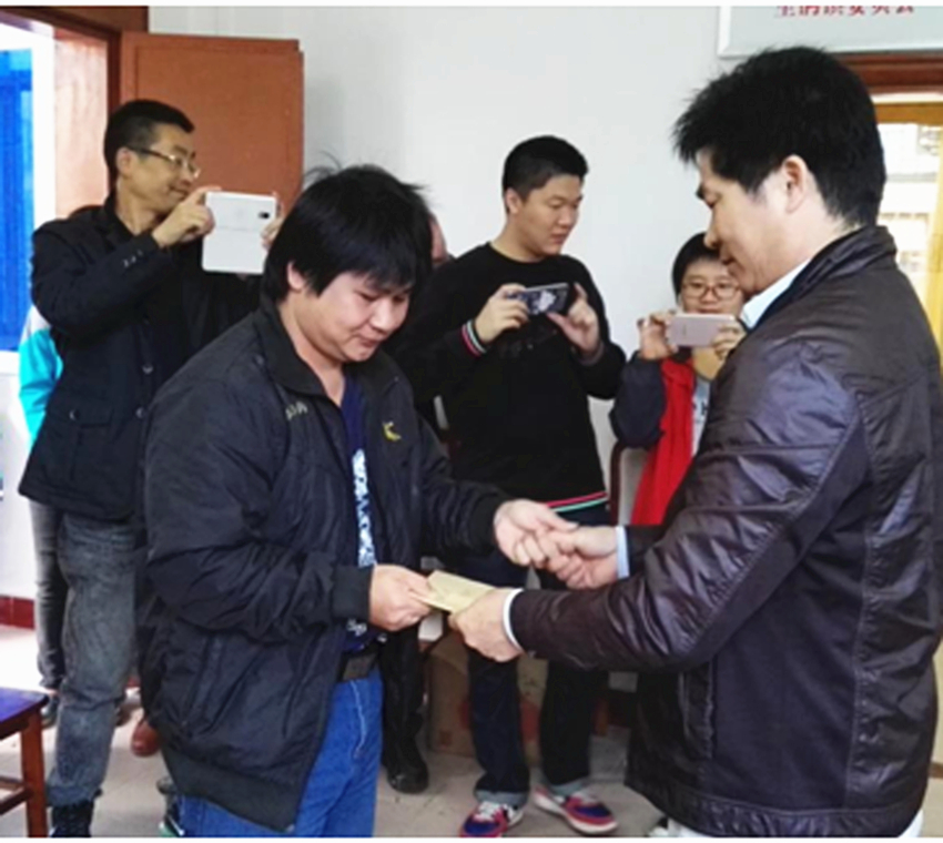 集團(tuán)黨支部書記陳永錦給殘疾人送上慰問金