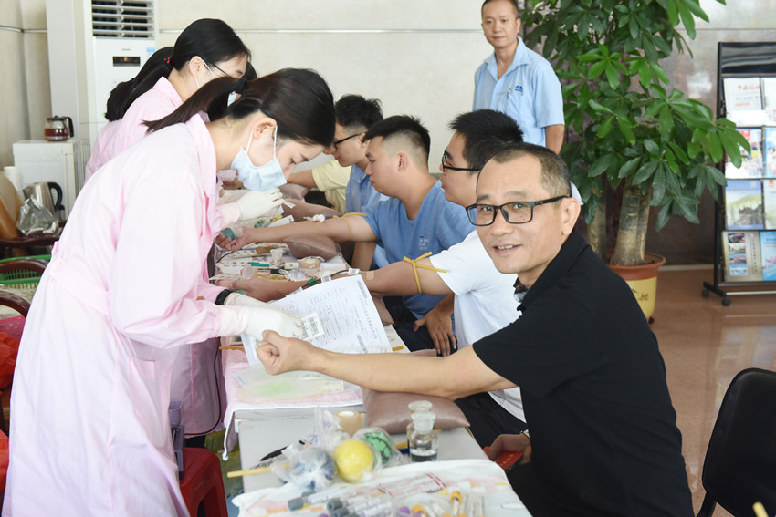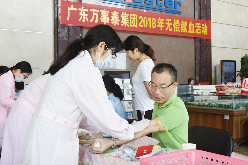 集團(tuán)訊 為弘揚(yáng)無私奉獻(xiàn)、愛心助人的精神,9月10日上午,廣東萬事泰集團(tuán)組織員工開展集體無償獻(xiàn)血活動,詮釋了萬事泰人的愛心、責(zé)任與擔(dān)當(dāng)。此次活動共有近百名員工參與其中并成功獻(xiàn)血,萬事泰常務(wù)副總裁劉炳耀等集團(tuán)高層更是當(dāng)先表率,積極加入到獻(xiàn)血“大軍”當(dāng)中,活動總獻(xiàn)血量達(dá)20000ml。
