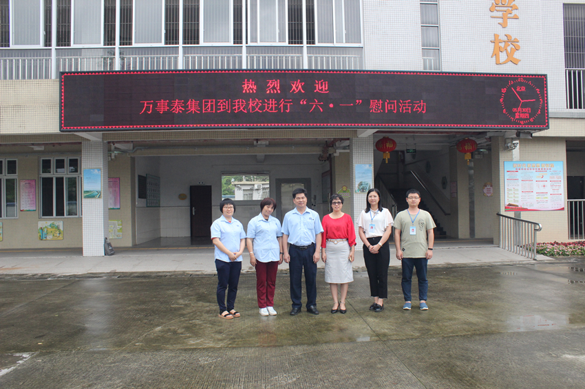 在5月30日下午,“六一”國際兒童節即將來臨之際,萬事泰集團工會主席梁洪光、行政部蘇瑞萍、溫文翠一行分別來到新興縣特殊教育學校、王香地小學、鳳凰小學、啟智康復中心、隴塘小學開展慰問活動,給孩子們送上節日的問候與祝福。