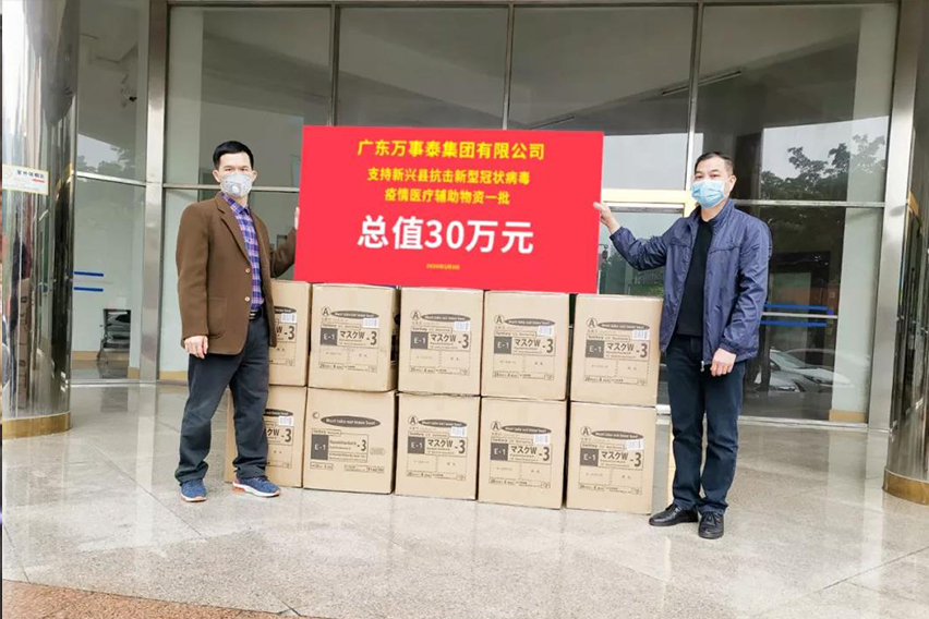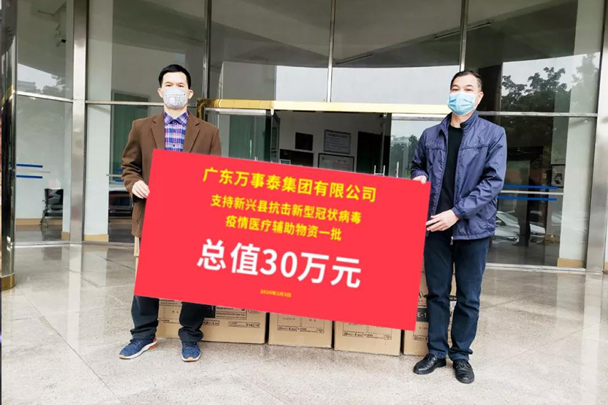 2月3日,萬事泰集團向新興縣人民政府捐贈了價值30萬的防疫物資一批。另還向縣不銹鋼商會捐資5萬元,用于支援政府相關防疫單位購置防疫所需物資。自戰“疫”打響以來,萬事泰在做好自我防控的同時,積極踐行社會責任,詮釋企業擔當,著力落實捐贈事宜,力爭為打贏這場防疫攻堅戰貢獻自己的一份力量。